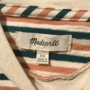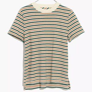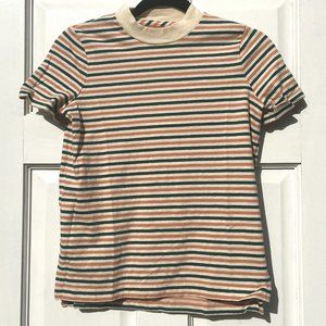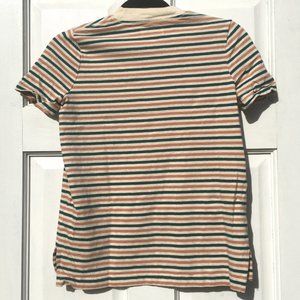 Retro-striped tshirt with green and brown stripes has a high crewneck and easy fit. Never worn, NWOT. 100% cotton