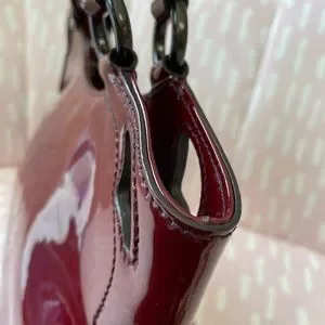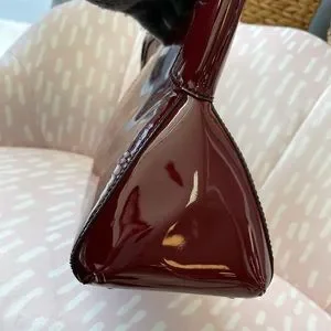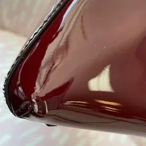 - Exterior patent leather is in very good condition. Vibrant and no discoloration. 2 Visible scuffs on each corner about a 1/4" on the bottom front left and 1.4" inch on the right corner ( almost invisible ). Aside from the two mentioned flaws, the bag is in pristine condition.