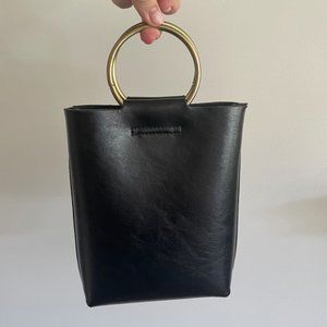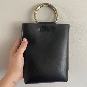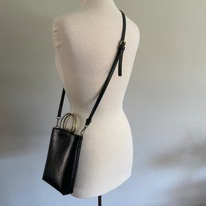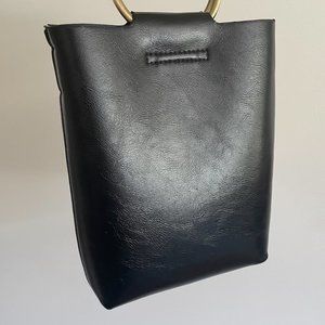 Crossbody strap can unclip to be worn as a handbag, the brass circular handles can lay flat inside the bag if desired to wear as crossbody