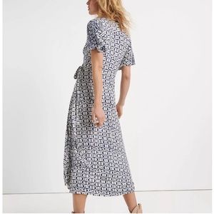 Lucky Brand Boho Blue & Cream Geometric Print Wrap Maxi Dress Size Small