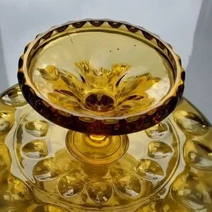 Warm & inviting amber color with thumbprint design make this cake plate a wonderful addition to your collection! Great condition NO chips-cracks. Natural air bubbles in glass from manufacturing. Note the size is 9 3/4" Wide so only smaller cakes and smaller cake domes will work with this dish. Check out my other Amber pieces to Bundle & Save!