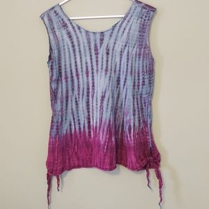 HANDMADE in Indonesia Blue Magenta Tie-Dye 100% Cotton Tank Top with side ties Size XL