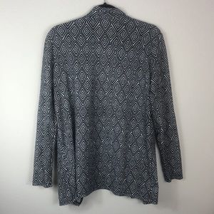 This incredible, soft, black and white cardigan/jacket is perfect and easy to throw over any neutral top and pants to make a total statement outfit! It features an amazing, almost psychedelic-like black and white diamond print that creates a really cool effect and is a really unique design. It’s in great condition.