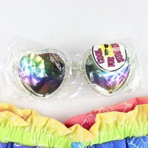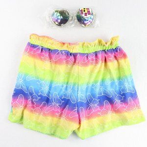 RMLA Girls Shorts and Sunglasses Set Size 6x Knit Rainbow Stripes Butterflies