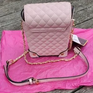 Lovely soft pink, quilted crossbody handbag. Approx 6 1/2" tall x 5" wide x 2 1/2" deep.