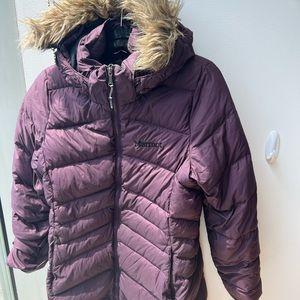 Deep Purple Marmot Parka Size M with faux fur removable trim. So Warm!