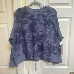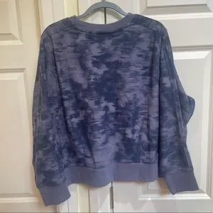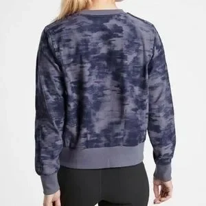 Athleta blue Farallon print sweatshirt. Relaxed with room to move. Organic cotton is lightweight and breathable.