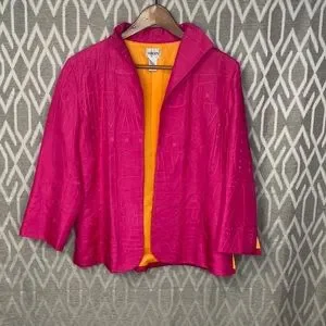 Chico’s Embroidered Topper Jacket 100% Silk Pink With Orange Lining.