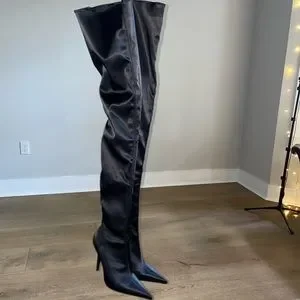 Jeffrey Campbell over the knee satin boots