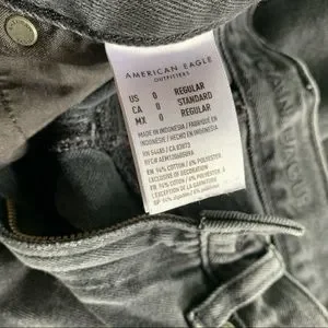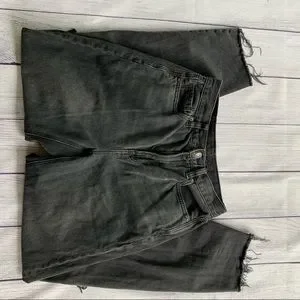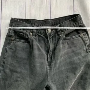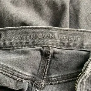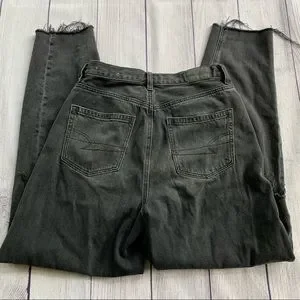 American Eagle Womens High Rise Black Jeans Denim Distressed Tapered Leg Size 0