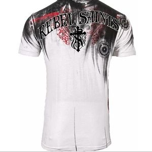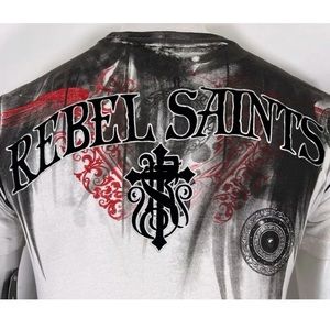 Rebel Saint By Affliction Men's T-Shirt Bloody Night Biker Skull
