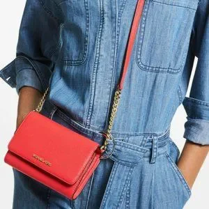 Michael Kors Jet Set Travel Medium Pebbled Leather Convertible Crossbody Bag - Coral Reef