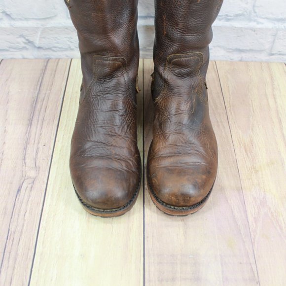 FRYE Brown Distressed Leather Buckle Strap Pull On Boots Size 7.5 D