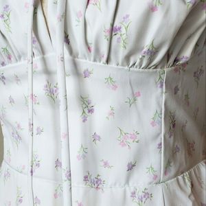 White Floral Print Puff-Sleeve Square Neck Midi Maxi Dress