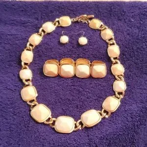 Fun and chunky BR Necklace, bracelet & earrings. Off-white and yellow gold. Necklace is approximately 20". GUC. It's a great statement piece!