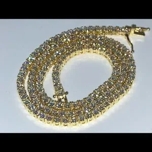 18k Yellow Gold Plated Moissanite Tennis Chain Necklace 18-24” 3mm 925 Silver