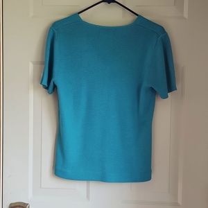Sag Harbor Women's Med Turquoise Dainty "V" Neckline, Short Sleeve