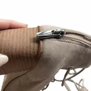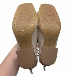 Vince Camuto Nahara Cage Sandal Corset Tie Heel. Taupe neutral beige color.
