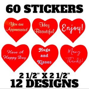 60 Heart Stickers 2 1/2” X 1 1/2” PRICE IS FIRM