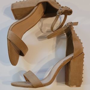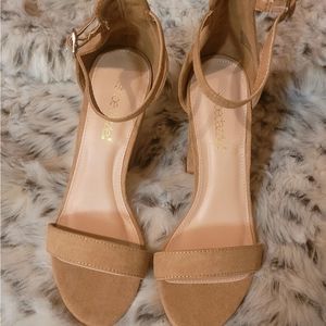 Shoe Dazzle Tonya faux-suede block heels in tan Size 8. New in Box.
