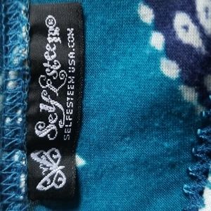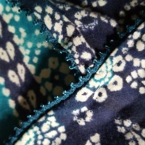 Soft & flowy tank top with teal adjustable satin straps. V neck wrap look with teal, satin, scalloped detail. Teal/off-white/navy. 90% cotton, 8% rayon, 2% spandex. Size 1X. EUC.