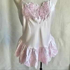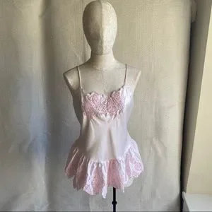Vintage Victoria’s Secret 70s 80s Pink Teddy Top Lingerie Bodysuit Onesie Romper