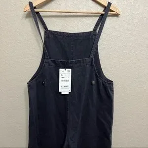 NWT Zara Denim Wide Leg CROPPED POCKET JUMPSUIT Size small