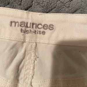 Maurice’s brand. High rise distressed shorts with belt. Size 12, white in color. New without tags