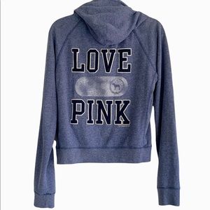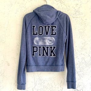 PINK Victorias Secret LOVE Hoodie Sweatshirt Zip Front. Blue Women’s large