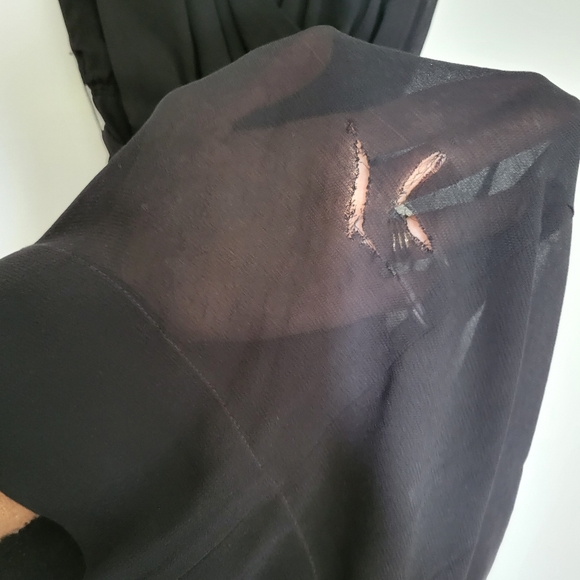 - Tear in fabric at bottom of leg, as photographed, not so noticeable in the folds of fabric (I've worn it since)