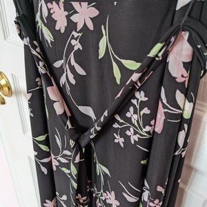 Size 10 Anne Klein stretchy long dress - black with pink and white flowers