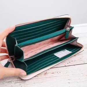 interior: 12 credit card slots 2 slip pockets zip coin compartment 3 gusset compartments