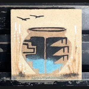 SMITHSONIAN MUSEUM Vintage Navajo Native American Vase & Eagles Sand Painting
