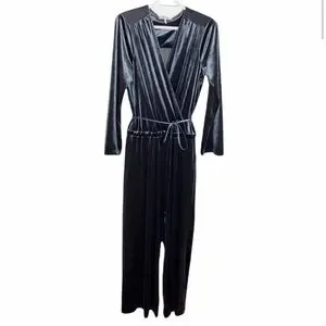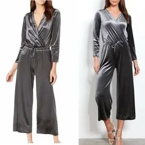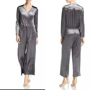 Three Dots Panne Stretch Velvet Cropped Jumpsuit Small