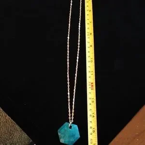 Gently used Marcia Moran necklace. Gold tone chain and rich aqua colored pendant