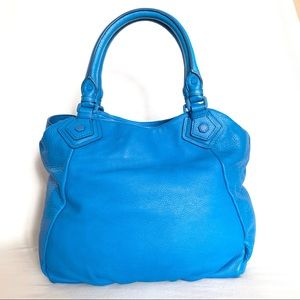 Authentic. Marc By Mark Jacobs blue leather bag. Approximately 15” x 11 1/2” x 4” Top handle and it has adjustable shoulder strap. Excellent condition.