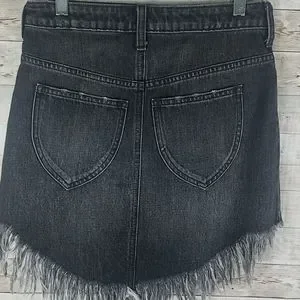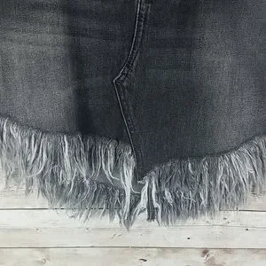 NWT, We The Free, 0117, mini fringed skirt, Mavericks black wash fabric, with distressed hemline. Has back pockets, belt loops, front zipper, also front pockets, sz Super Super cute, Sz 25.