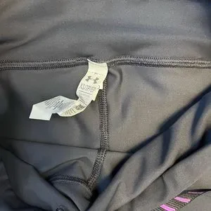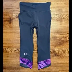 These Under Armour reflective capris are in excellent condition and have never been worn. They have a zip pocket on the back for keys (probably too small for a phone) and interior ties at the waist line. Runs true to size.