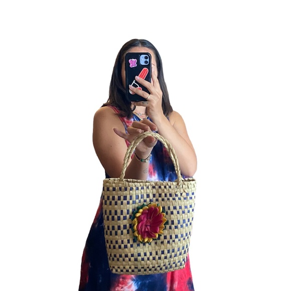 BEAUTIFUL Oaxaca Handmade Straw Tote Purse Made in Mexico with Flower detail