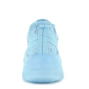 Rock out in this sleek blinged out sneaker. This style features a fabric upper with glitzy rhinestone embellishments. The lace-up front provides the perfect fit.