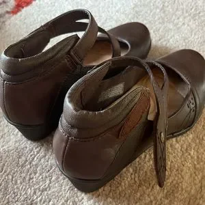 Earth Origins SZ 8.5 brown Velcro strap slip ons.