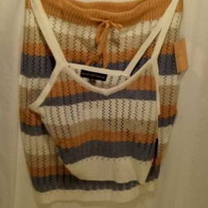 Women's ALMOST FAMOUS 2PC KNIT SKIRT SET with Functional Drawstring color Ivory Combo