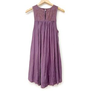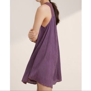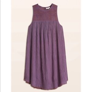 Aritzia Wilfred Allier embroidered shift dress. Flowy sleeveless dress with keyhole detail at back. Dusty purple color with a tan embroidered yoke. Fully lined.