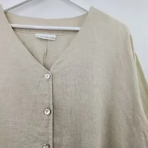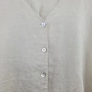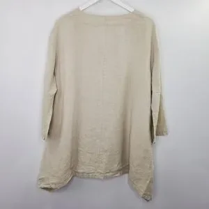 Bryn Walker Linen Tunic Top Button Down Neutral Lagenlook Oversized Minimal