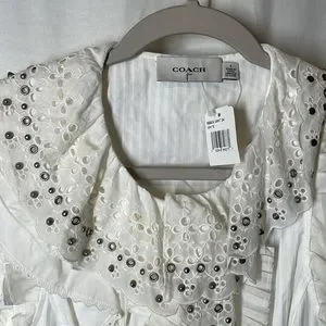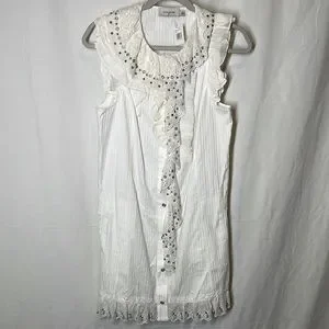 This lightweight cotton and linen blend dress is designed with romantic cascading ruffles and delicate broderie anglaise details. Polished studs add a touch of rock ‘n' roll attitude.