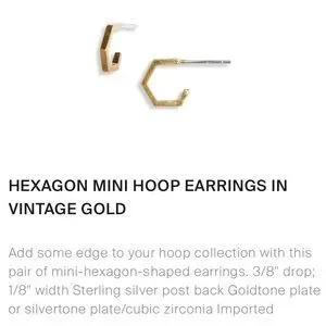 Madewell | Hexagon Mini Hoop Earrings In Vintage Gold New.