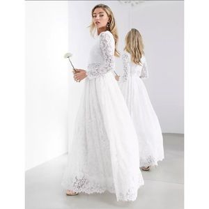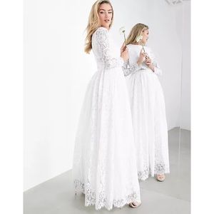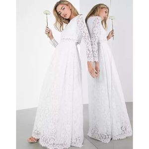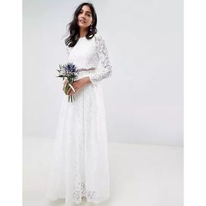 ASOS BRIDAL EDITION Grace Lace Long Sleeve Crop Top Maxi Wedding Dress