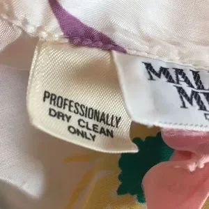 Dress is white with pretty colorful floral design…kind of Hawaiian/tropical floral daisy print. It would be midi length on me (I am 5’3). Functional buttons up the front. Belt loops with matching sash/tie. Lightweight and semi-sheer. Perfect for a summer picnic, garden party, or trip to the park, or wherever you want to wear it. 🙂