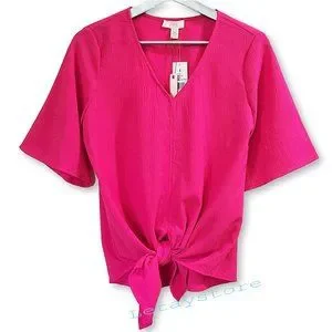 NWT Cupio Blush V-neck Tie Front Textured Pink Shirt Blouse