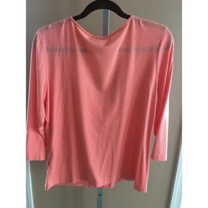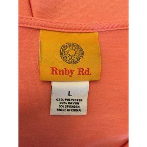 Ruby Rd Shirt Top Blouse Flower Texture Salmon Large 3/4 Sleeves Casual Comfort